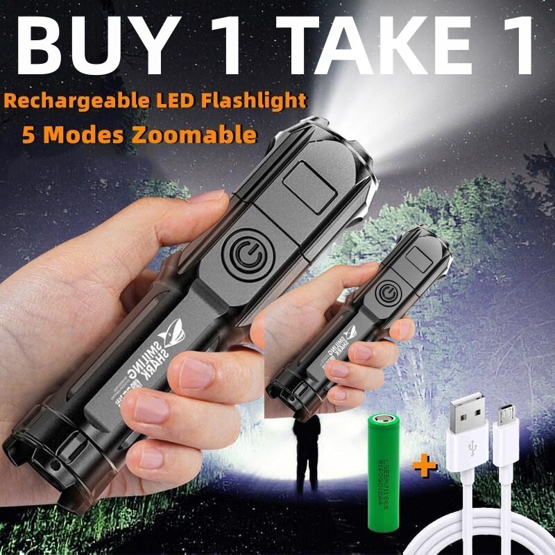 BUY 1 TAKE 2 Powerful Flashlight Rechargeable Tactical LED Flashlight Torch Lantern Power Bank Outdoor Ultra Bright Portable Light Flashlight 3 mode ABS zoom flashlight